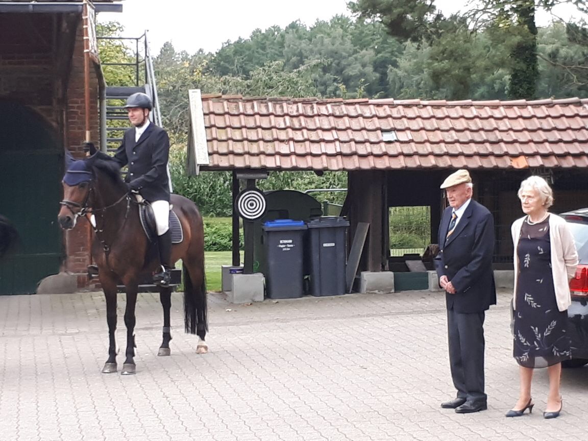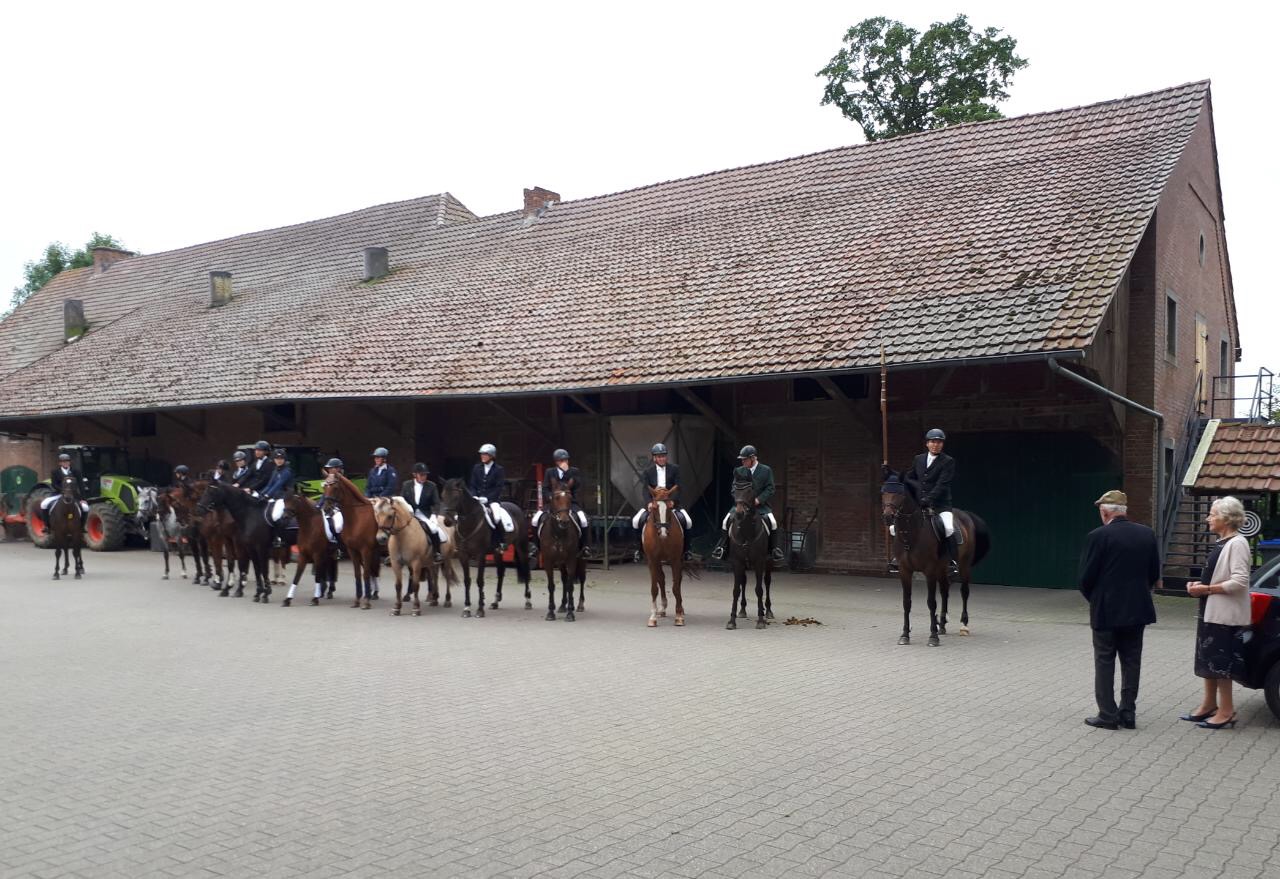 Eine stattlich Zahl von Albersloher Reiterinnen und Reiter machte sich mit der Vereinsstandarte auf den Weg, um die herzlichen Glückwünsche des Vereins persönlich zu überbringen. Der Vorsitzende des RVA, Christian Lütke Harmann, wünschte weiterhin gute Gesundheit, verbunden mit der Hoffnung, sich in fünf Jahren zum 100. Geburtstag an gleicher Stelle wieder zu treffen.