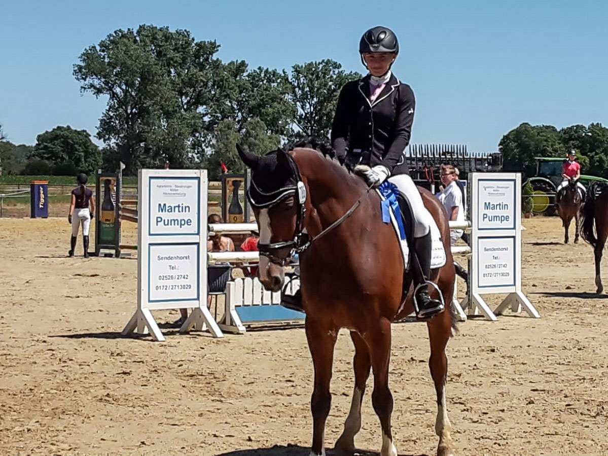 Auf dem Turnier der Reitanlage Triebus Fallenberg in Ennigerloh war Carolin Rebsch mit ihrem Wallach Pindaro erfolgreich und erritt sich einen guten vierten Platz in einer Dressureiterprüfung der Klasse A.