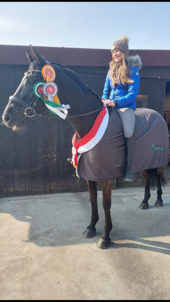 Am vergangenen Wochenende startete Judith Heimann vom RV Albersloh mit Lissa’s Lady in ihrer ersten Vielseitigkeitsprüfung auf A* Niveau in Warendorf. In der Dressur am Samstag erreichten die beiden mit einer Wertnote von 7,5 den 5. Platz, im anschließenden A* Stilspringen trotzten die beiden Regen und Wind und erlangten mit einer 8,1 den Silberrang. Nach diesem erfolgreichen Start in das Wettkampfwochenende stand nachmittags noch Weide-Wellness für ‚Lissy‘ auf dem Programm. Am Sonntagnachmittag erwartete die beiden ein toller Geländeritt, sie meisterten Sprünge, Stufen und Wasser und konnten zeigen, welch tolles Team die zwei in den vergangenen Monaten geworden sind. Belohnt wurden die beiden mit einer Note von 8,6 im Geländeritt und sicherten sich hiermit sowohl den Sieg in der Geländeprüfung als auch den Gesamtsieg im ‚Emshofpokal‘.