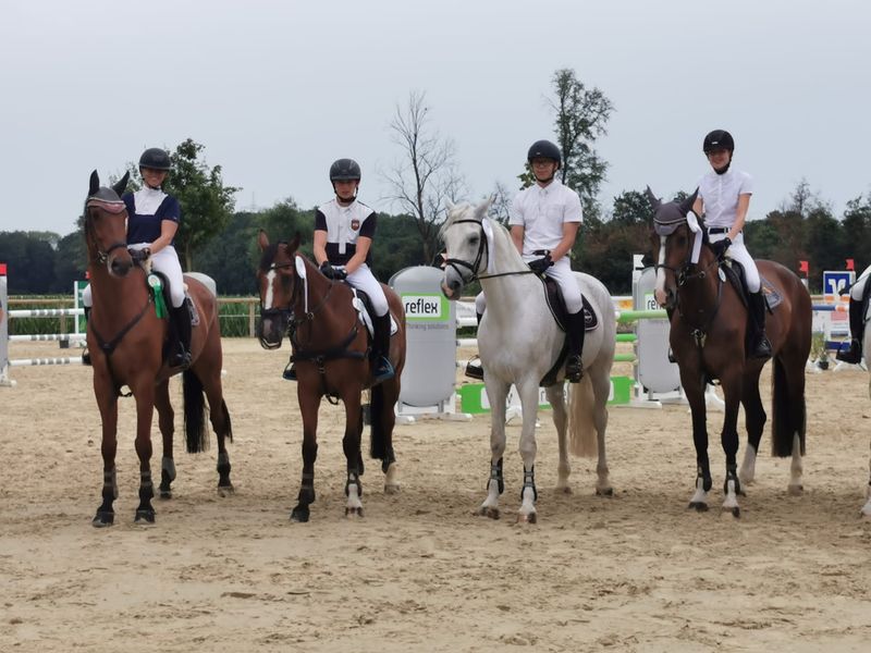Ebenfalls erfolgreich ging die Mannschaft im Springpokal an den Start. Hier fand die 2. Wertungsprüfung statt und unsere Reiter Johannes Bohlig auf Cashmen, Anna Schulze Zuralst mit Dia Cornada, Robin Bartmann mit Lord Lunatic und Tina Schlienkamp mit Carlitos erritten sich den 3. Platz in der Mannschaftswertung.