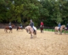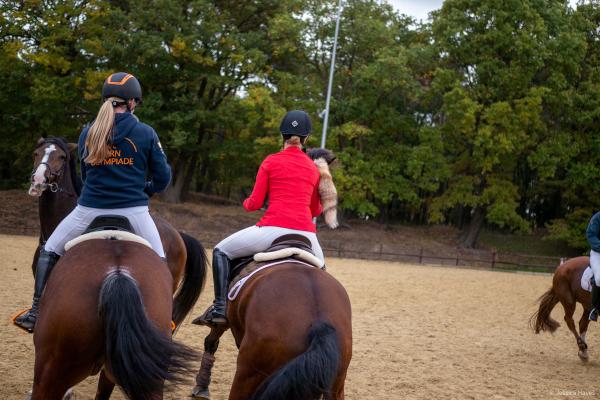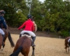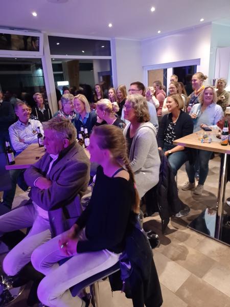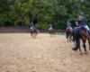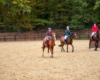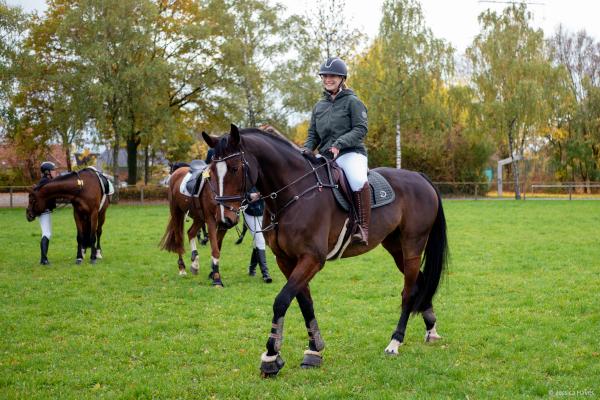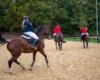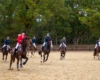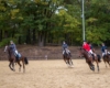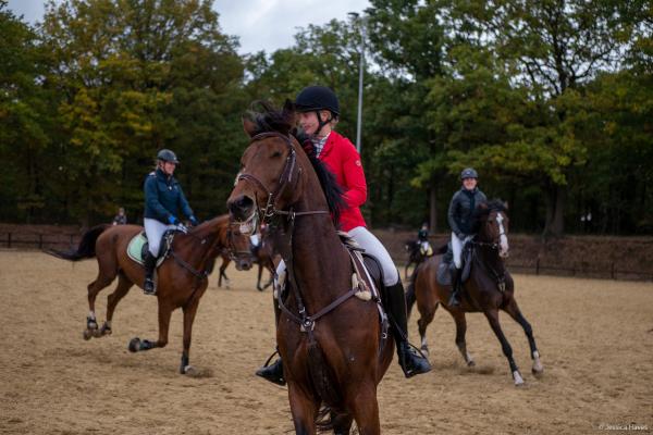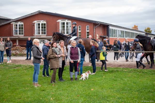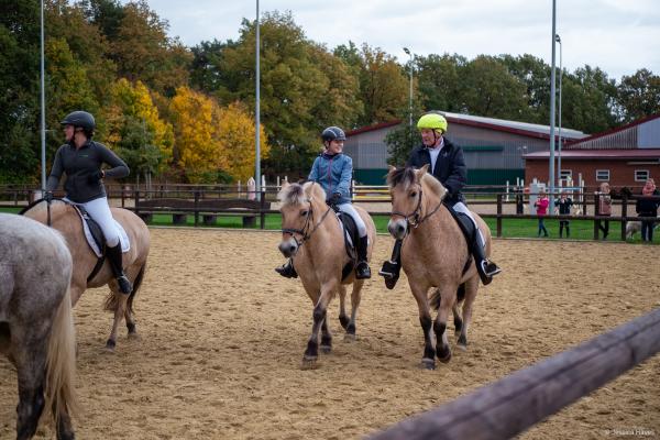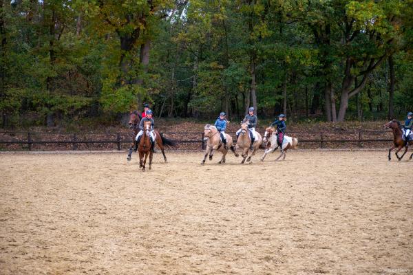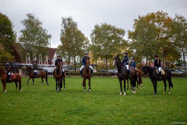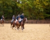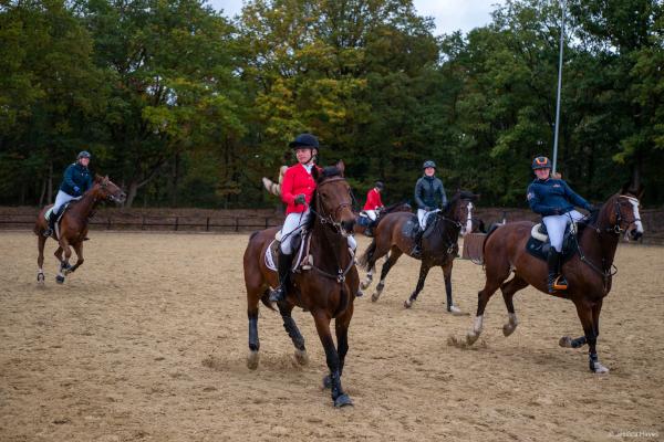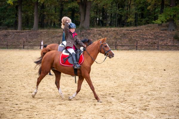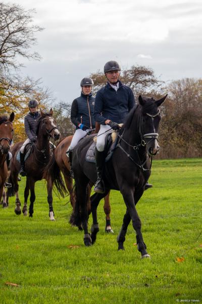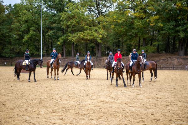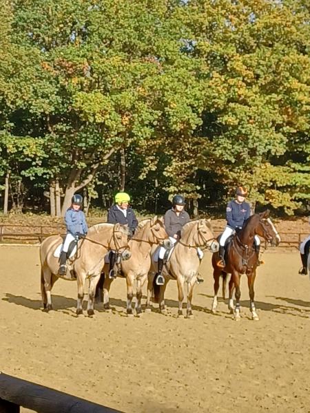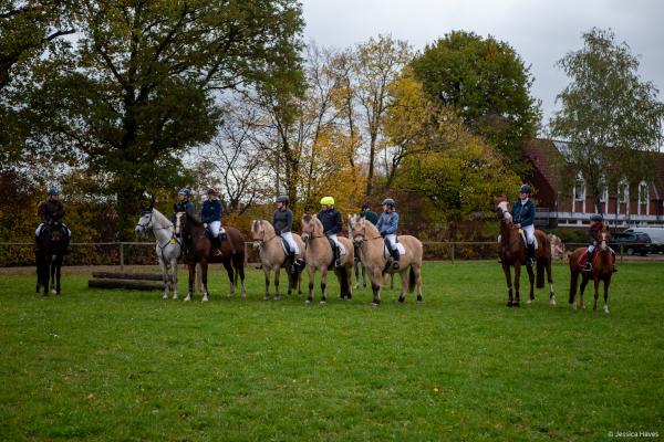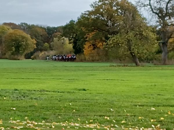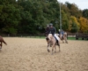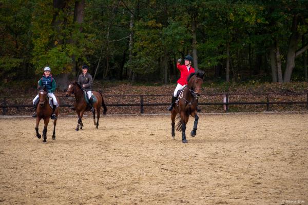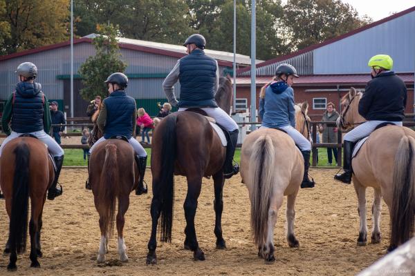 Bei schönem, herbstlichen Wetter trafen sich am Samstagvormittag Reiter und Radfahrer zum gemeinsamen Herbstausritt. In vier Gruppen machten sich fast 30 Reiter und Pferde durch die Hohe Ward auf den Weg zum benachbarten RV Rinkerode und zur Familie Everding, wo mittags nach einem schönen, entspannten Ritt eine Stärkung auf alle wartete. Im Anschluss ging es zurück zur Reitanlage, wo der Tag mit dem Fuchsschwanzgreifen seinen Höhepunkt fand. Den ‚auswärtigen‘ Fuchsschwanz sicherte sich Janne Lükens, bei den Ponyreitern konnte Katja Erdbrügge den Fuchsschwanz ergreifen, bei den Großpferden gelang dies Carolin Rebsch. Geleitet wurde die Gruppe an diesem Tag durch die beiden ‚Master‘ Harald und Emma Schröder. Seinen Ausklang fand dieser schöne Tag am Abend mit einer Party zur Ehrung der neuen Fuchsmajore im Vereinsheim.