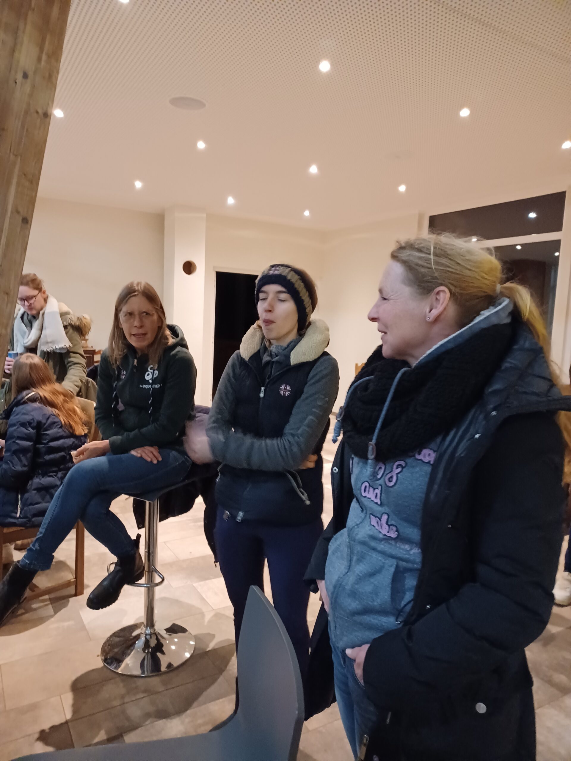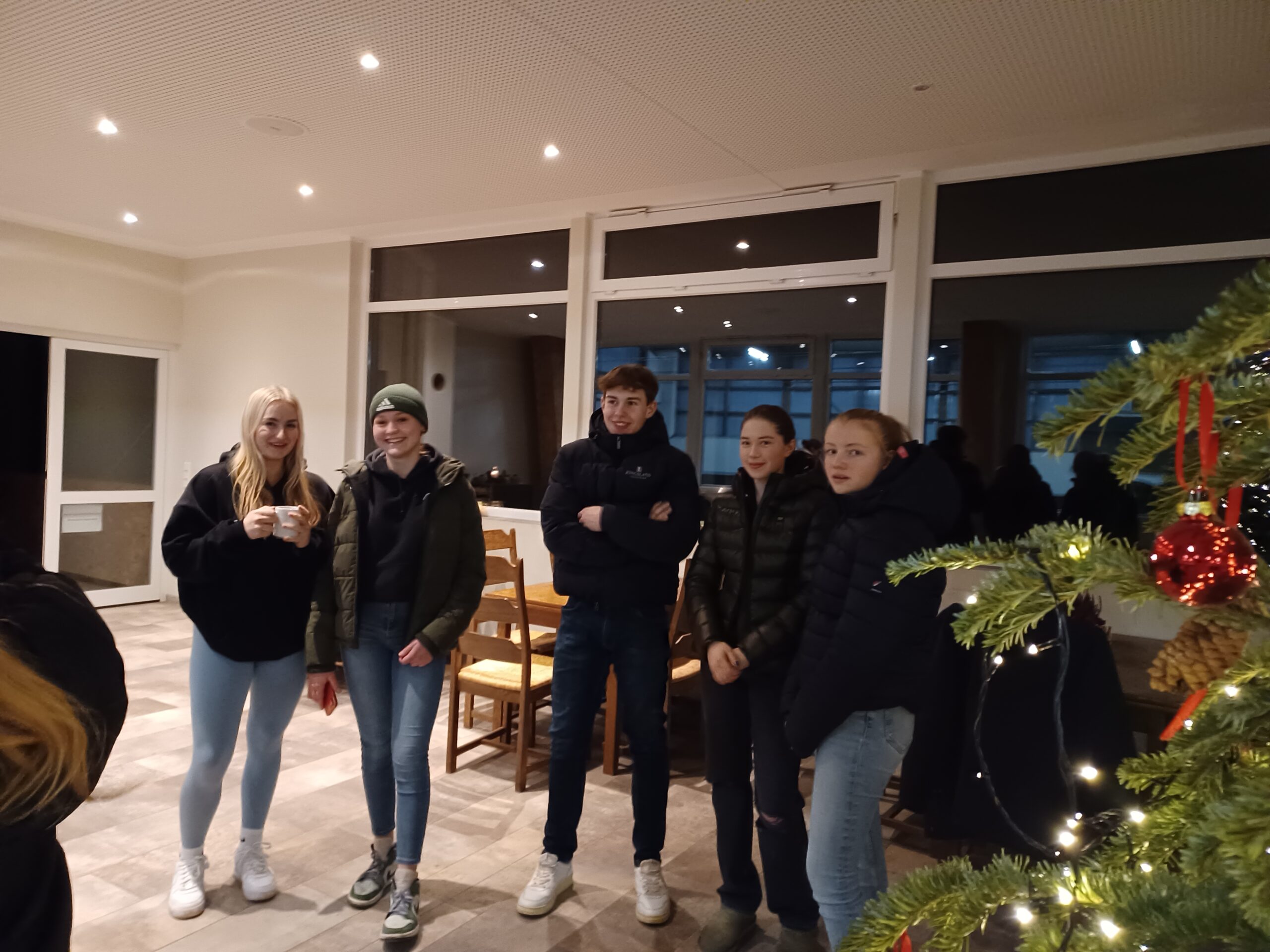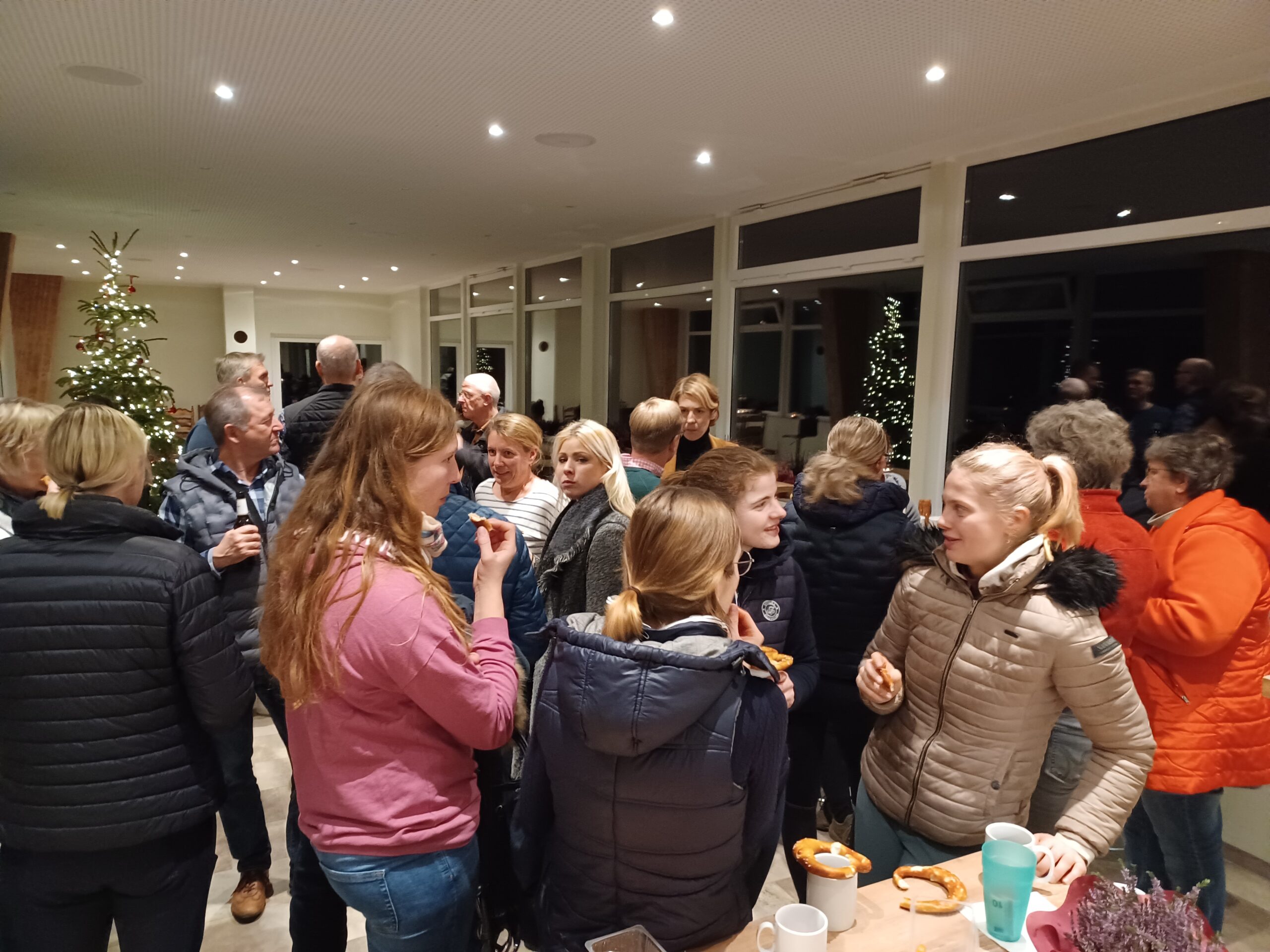 Die Mitglieder des Festausschusses verwöhnten ihre Gäste mit Glühwein, Kinderpunsch, kühlen Getränken sowie warmen Laugengebäck. Mit den an diesem Abend verteilten Karten für den Kürabend im Gepäck wünschten alle Reiterfreunde den Mannschaftsreiterinnen und -trainerinnen viel Erfolg und Glück für den bevorstehenden Wettkampf.