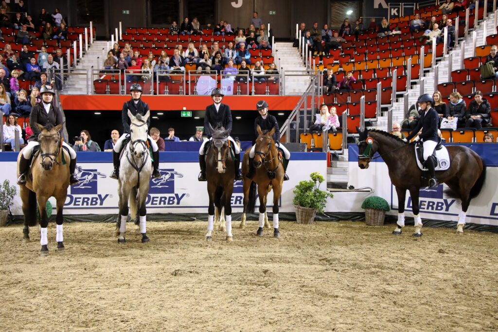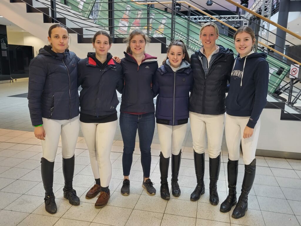 Besonders die Mannschaftskür am Donnerstagabend ist immer wieder ein Garant für gute Stimmung. So auch wieder dieses Jahr. Für den RV Albersloh gingen unter der Leitung von Andrea Niebling Lea Steinbach mit Stella, Nadine Teupe mit Crack WZ, Anna Schulze Zuralst mit Dia Cornada, Frederieke Wenning mit Occupy Wallstreet MD, Mia Sandmann mit Dibavero und Nikola Sauerland mit Ever Enjoy GL an den Start. Vier ausgewählte Reiterinnen ritten am Donnerstagabend die Mannschaftskür in der vollbesetzten Halle Münsterland und lagen danach in der Gesamtwertung auf dem 11. Rang. Spannend wurde es dann am Samstagmorgen beim abschließenden Springen, auf das Eva Deimel die Mannschaft vorbereitet hatte. Die Mannschaft nutzte die Chance und konnte sich auf den 9. Platz hocharbeiten.