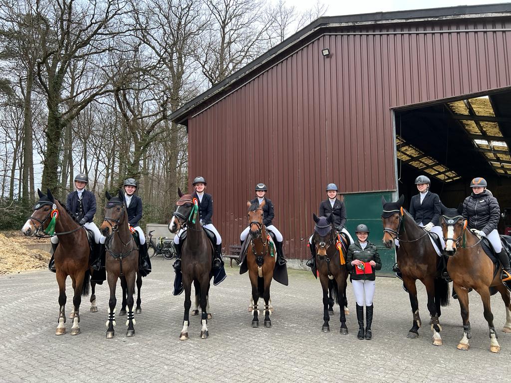 Nachdem der Reitverein Albersloh nach dem theoretischen Teil und der Dressur auf den 13. Platz gerutscht war, konnte sich die Mannschaft durch das Springen noch auf den 11. Platz verbessern. Qicera flog mit Greta Lütke Harmann mit null Fehlern und gut drei Sekunden schneller als die Zweitplatzierte über die Hindernisse und erreichte damit den ersten Platz in der Teilprüfung Springen in einem A** Parcours. Auch Julia Balder auf Napster 3 schaffte es hier mit null Fehlern auf Platz 9.