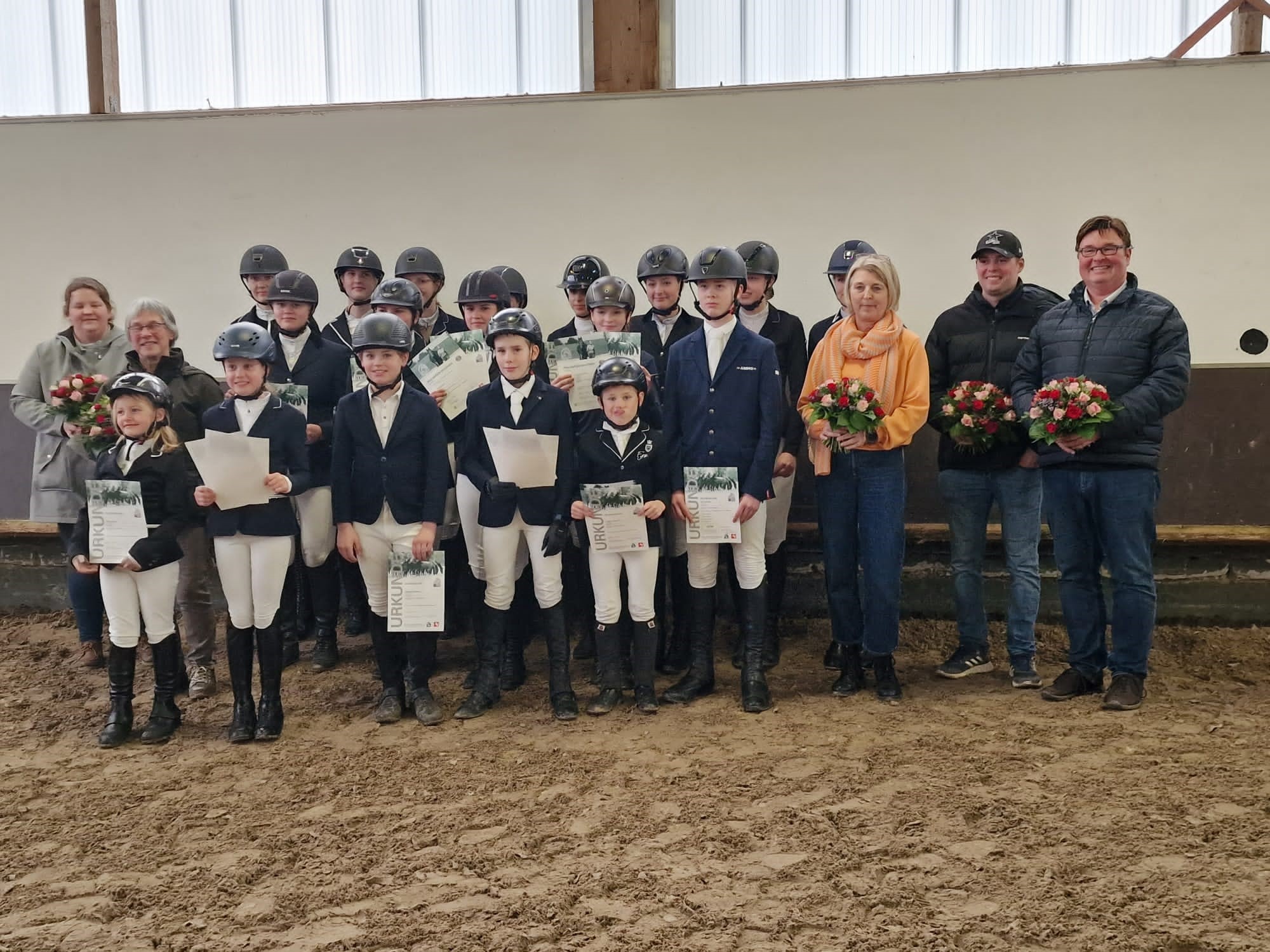 Dieser lange Prüfungstag ließ sich nur durch die perfekte Organisation von Ulrike Schulze Zuralst und die tolle Verpflegung durch das Team der Cafeteria mit Frühstück am Morgen, wärmender Suppe am Mittag und Kuchen am Nachmittag so gut meistern. Einen besonderen Dank sprach Bernd Stapel als Vorstandsmitglied des RV Albersloh zudem den beiden Richtern aus und ganz besonders den beiden Trainern, Sabrina Wenning und Mika Rausch, die mit viel Einsatz, Erfahrung und Ruhe die Vorbereitung und den Prüfungstag gestaltet haben.