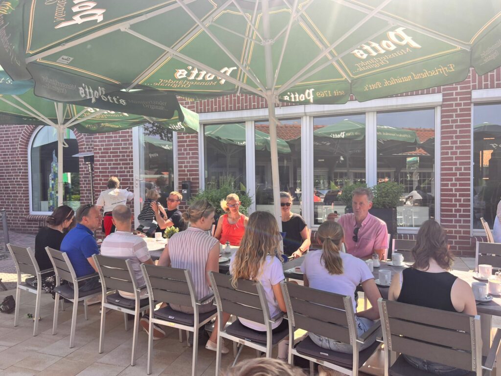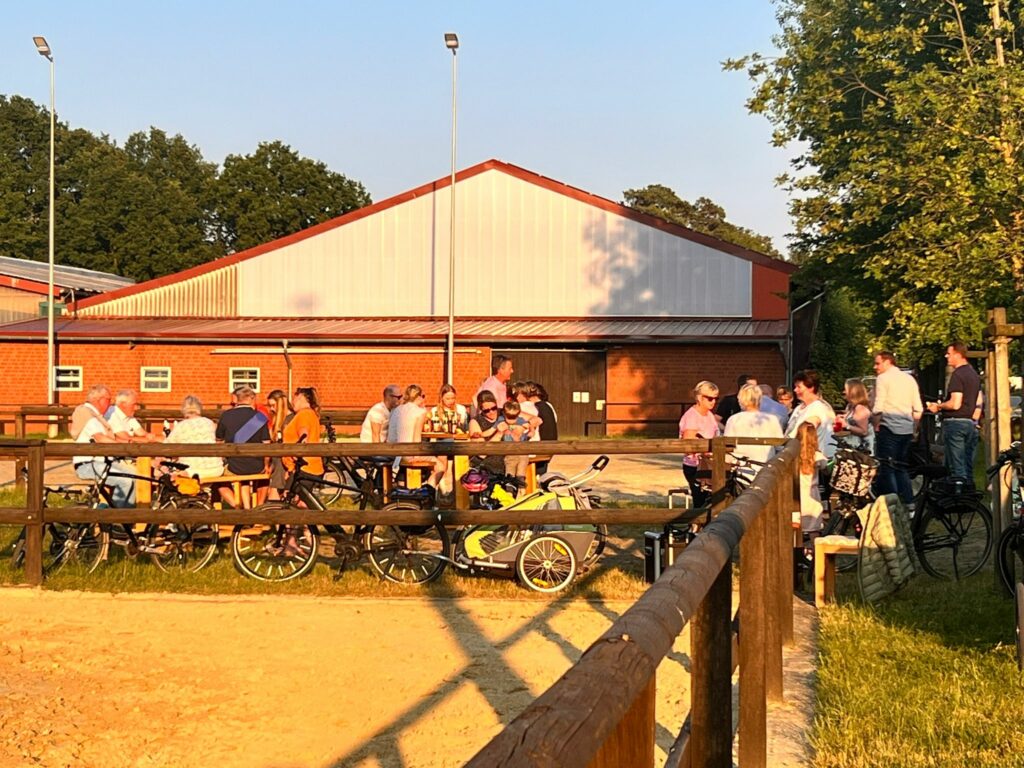 am Fronleichnahmstag starteten 46 Mitglieder des Reitervereins Albersloh, darunter auch viele junge Familien mit ihren Kindern, zu einer gemeinsamen Fahrradtour. Der Festausschuss des RVA hatte als Ziel das Hotel-Restaurant Clemens-August in Davensberg ausgesucht. Am Zielort angekommen, wurden alle Radfahrer mit Kaffee, Kuchen und Getränken verwöhnt.