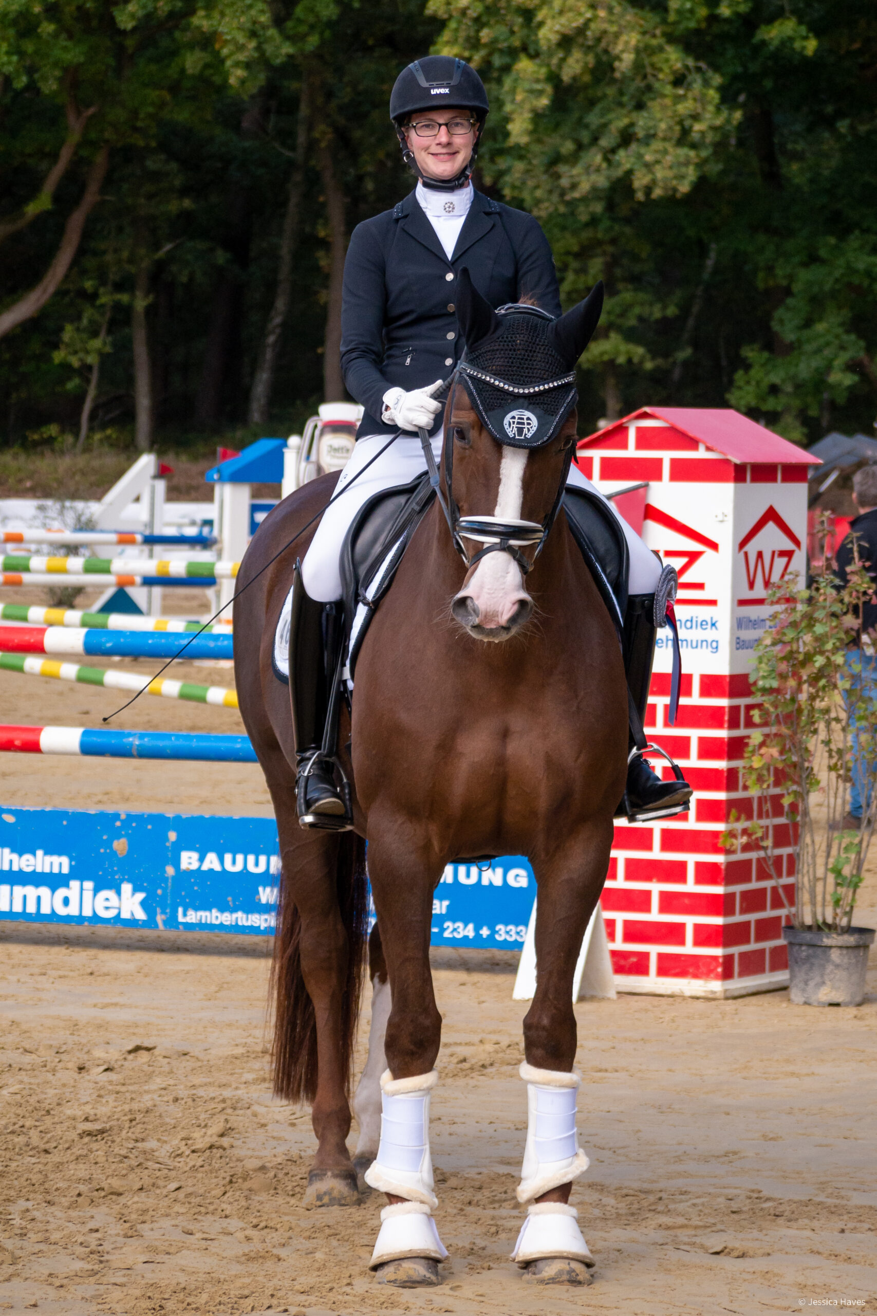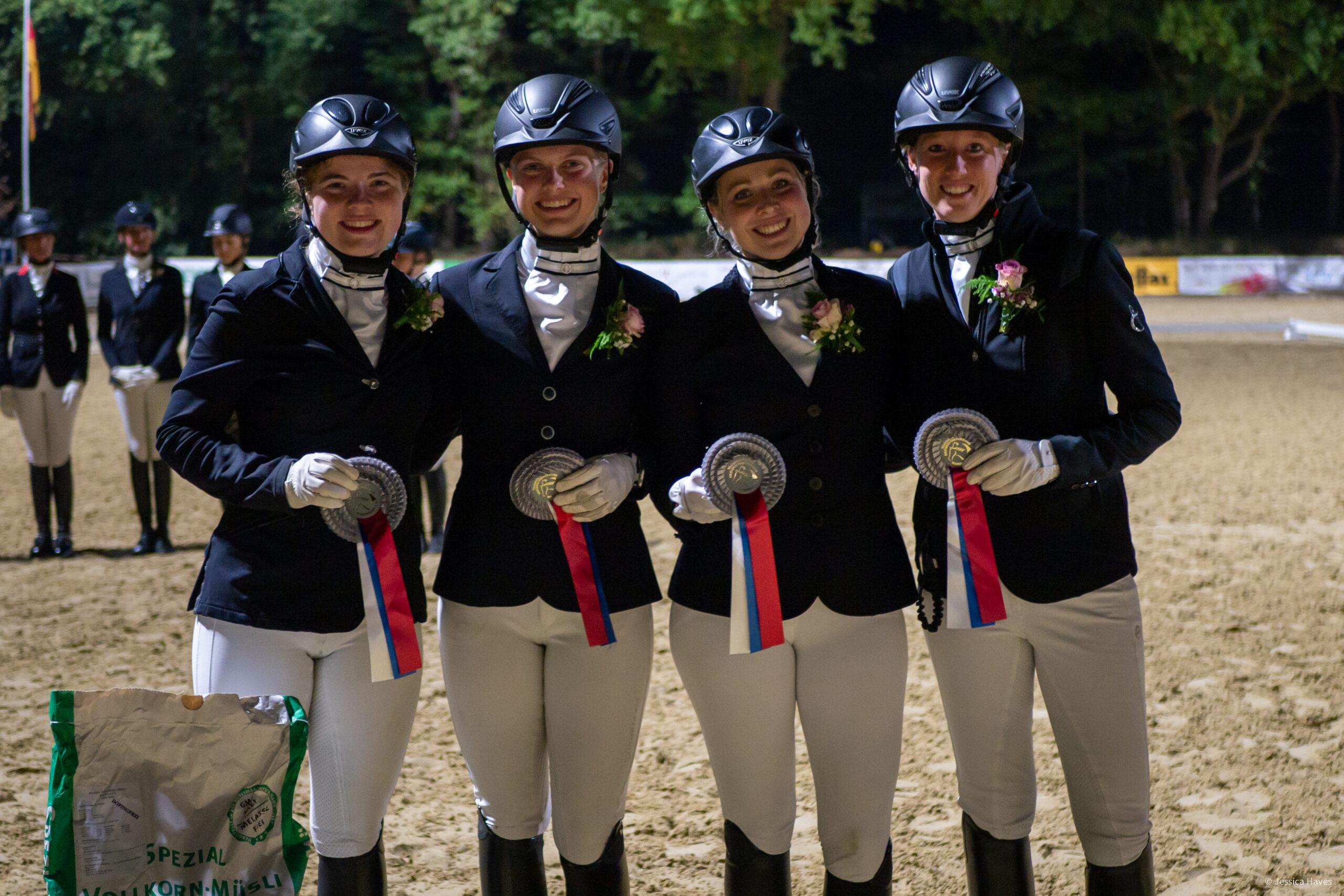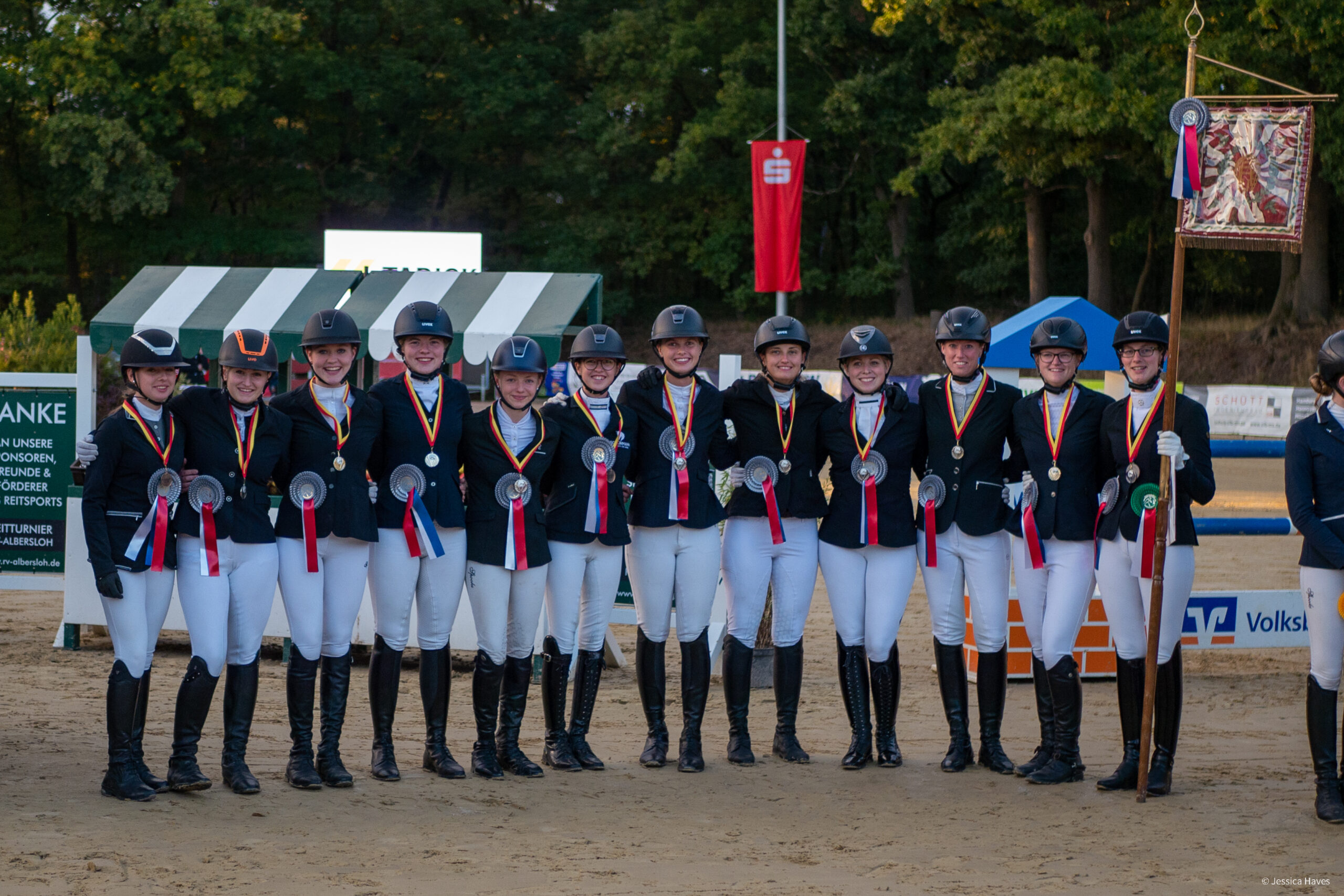 In der Gesamtwertung der Mannschaften erreichte unser Team den Silberrang und musste sich nur dem RV Gustav Rau Westbevern mit einem Rückstand von 0,7 Punkten geschlagen geben. Diese tolle Leistung hat das Team um Andrea Niebling mit den Reiterinnen Mia Sandmann, Carolin Rebsch, Judith Heimann, Lea Steinbach, Greta Lütke Harmann, Sabrina Nawrot, Emma Schröder, Nikola Sauerland, Teresa Budde, Nadine Teupe, Nicole Haves und Sylvia Eversmeyer und natürlich mit ihren Pferden mit tollen Ritten erreicht.