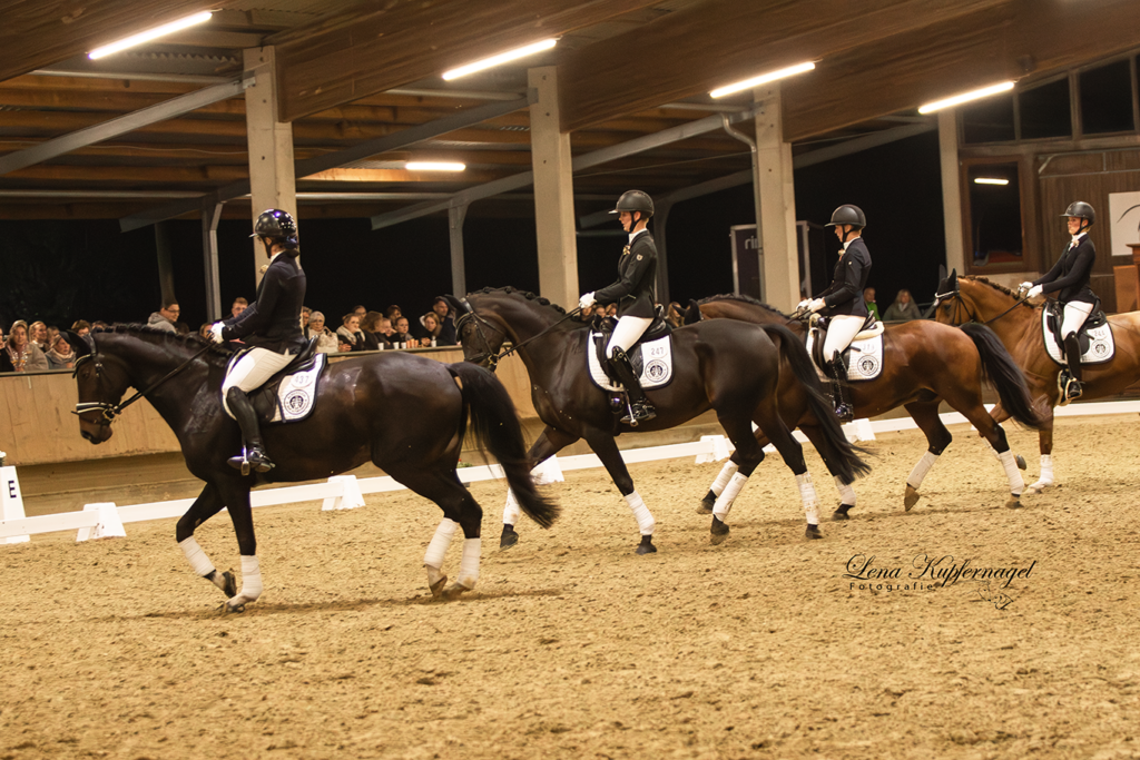 In der A-Dressur sammelten Marion Leifeld (6,5), Sylvia Eversmeyer (7,1), Larissa Haves (6,6) und Larissa Heine (7,3 / Platz 7 in der Einzelwertung) weitere Punkte für unsere Mannschaft.